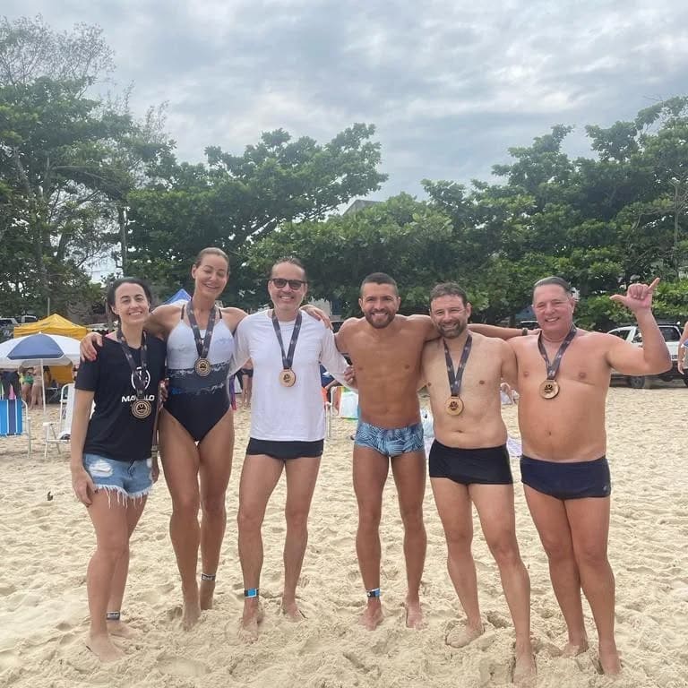 Desde início de 2019 resolvi voltar a nadar para retomar travessias de águas abertas, que havia interrompido há 20 anos e também melhorar meu rendimento na pesca submarina, treinando 3x na semana e fazendo personal de força e alongamento com o professor Ricardo Pinto. Neste período me condicionei como nunca havia estado, desde o tempo que era atleta de polo aquático. Depois de dezenas de provas no Rio de Janeiro, em Lisboa e Palermo Itália, transformei o meu prazer de nadar em competições de bom nível e uma melhor qualidade de vida nos meus 65 anos. Devo muito a este momento ao convívio diário com o prof Ricardo, ao ponto de patrocinarmos a equipe através da nossa empresa de seguros Life Insurance.